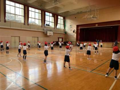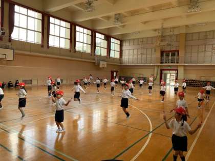 3学期初めての体育は縄跳びを中心に行いました。今月は「縄跳び月間」ということで全校で縄跳びに取り組みます。「パプリカ」の曲に合わせていろいろな跳び方にチャレンジすることになっています。今日は曲に合わせて跳ぶ練習をしたり、いろいろな跳び方の練習をしました。冬休みの宿題にもなっていたので、みんなずいぶん上手になっていました。