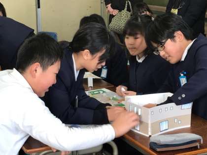 二時間目は、模型のモデルハウスを組み立てて家の構造を学習しました。