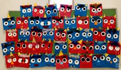 たくさんのかわいい赤鬼、青鬼がこちらを見ています。