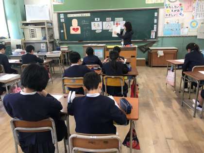 栄養指導で、「おやつの食べ方」について学習しました。おかしの袋にはカロリー表示があり、1日に摂る量は200キロカロリーが望ましいと教わりました。子どもたちは、普段のおやつで塩や油、砂糖を摂りすぎていないかを振り返り、これからは栄養バランスにも気を付けて食べていこうと話し合いました。