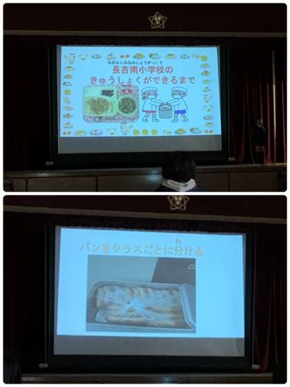 今日の児童集会は、給食委員会からの発表でした。