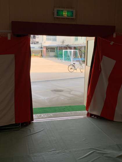 お帰りは運動場側のドアからお願いします。自転車でお越しの方は、自転車をお忘れなく。