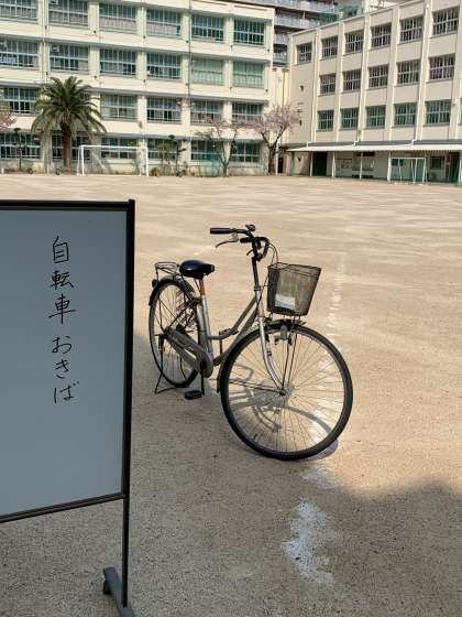 自転車でお越しの方は、正門から入られて右手の運動場に並べて置いてください。