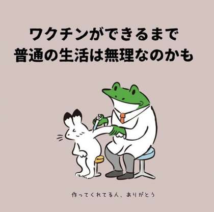 いま、りゅうこうをおさえるために きたいされているのが、ワクチンのかいはつです。ワクチンはせっしゅすることで めんえきとおなじようなこうかを もつことができます。ワクチンができるまでは、かんせんをなるべくひろげないように すごすことがたいせつです。