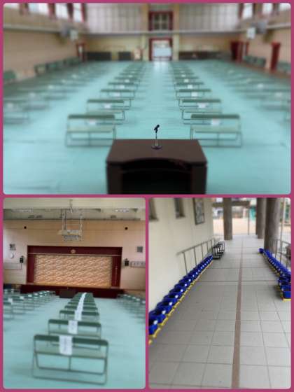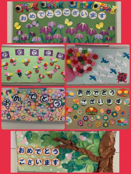 入学式ではありませんので、「入学式」の看板は玄関に出しませんし、講堂内にも紅白幕もありません。お子さんと保護者の皆様に、担任・担当やクラス分けをお伝えし、次回からスムーズに登校できることが目的です。お悩みの方もおられるようですが、式ではありませんので、保護者の皆様は、参観等で学校に来られるような服装をご提案します。