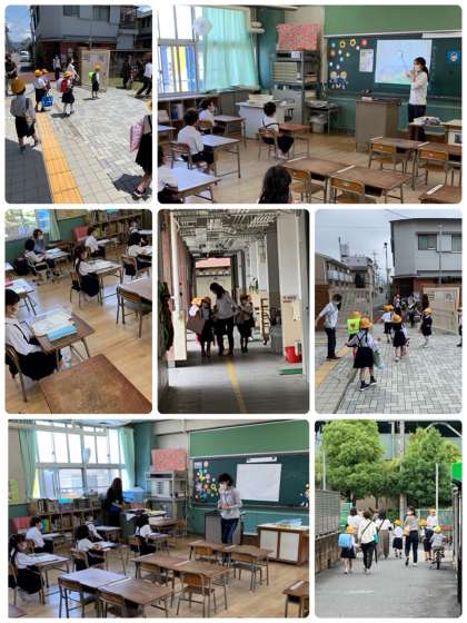 5年生は、登校時は少し緊張しているように感じましたが、下校の時にはいい笑顔で帰っていきました。教室でもしっかり話を聞けていました。1年生は、いすに座って、先生のお話に目と耳で聞いていました。姿勢もとてもよかったです。挨拶もとても元気にできていました。