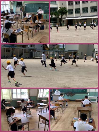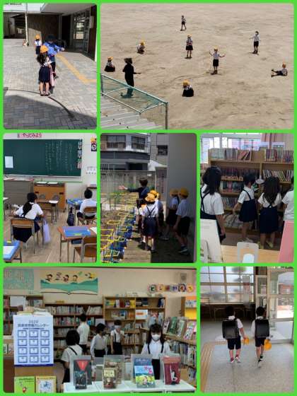 教室だけではなく、図書室、運動場、学習園といろんな場で行いました。「ひらちゃんノート」に、読んだ本のタイトルが増えてきましたね。これからどんどん増やしていきましょう。