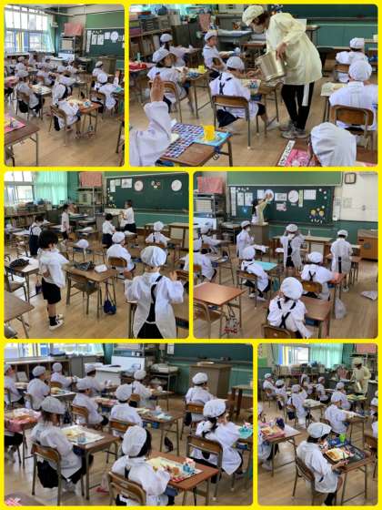 1年生にとっては、今日は記念すべき初めての給食。これから何百食と食べるであろう小学校給食の第一歩は、スパゲッティミートソースでした。