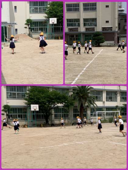 今日の休み時間の運動場の割り当ては、3年生と6年生。