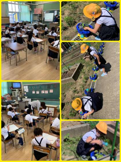 2年1組は漢字学習。だんだんとむずかしい漢字が増えてきました。2組は発育測定。静かにルールも守れていました。3年2組も漢字学習。3年生で習う漢字は、なんと200字! 一つ一つていねいに覚えていこう!