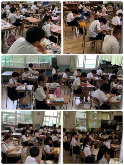 来週からは、週に3回はごはん、おかずも増え、果物がでてくる日もあります。授業だけでなく、献立も通常に戻りますが、「席を離す」「前を向く」「しゃべらない」の約束は変わりません。配膳方法にも気を配りながら、来週からも行います。