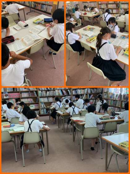 4年1組は図書室で、漢字辞典を使って自分の名前の漢字を調べていました。見つかったかな〜? 辞典には何と書いてあったのか、おうちで聞いてあげてください。