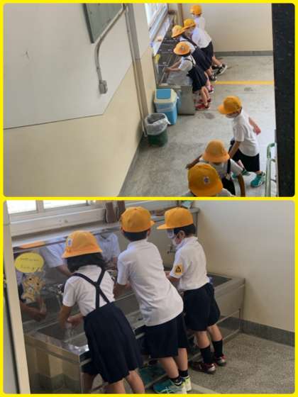 いや〜、すごい。密を避ける行動ができています。きっと1年生にとっては当たり前の行動なのでしょう。大人が見習わなければならないかもしれませんね。