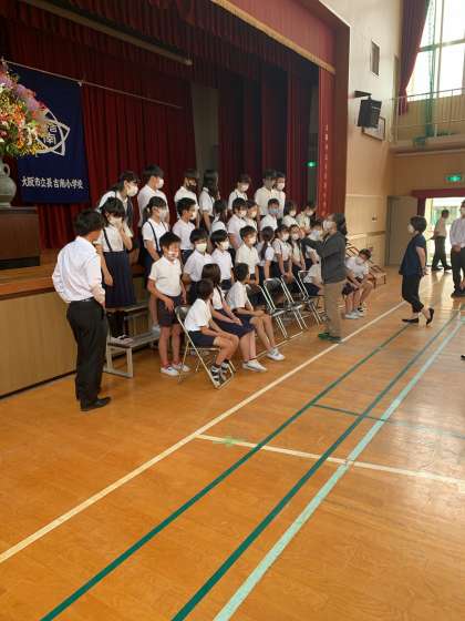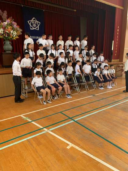 自分の場所を確認し、ポーズの説明が終わったら、マスクをサッと取って撮影です。変な表現ですが、子どもたちの「素顔」を久しぶりに見ました。笑っている顔はやっぱりいいです。安心します。と思っていたら、ある子に「校長先生の顔、久しぶり〜」と言われました。思いは同じだったのね。