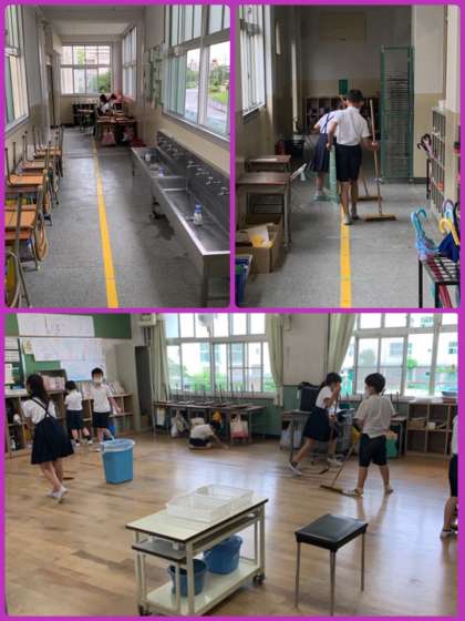ふだんからていねいにそうじをしている3年1組。今日は、さらにていねいにそうじをしようと、机を全部廊下に出してそうじをしていました。そういう姿勢はきっと「ものを大事にしよう」「みんなのものをていねいに使おう」という心のあり方につながります。大切にしてほしいです。