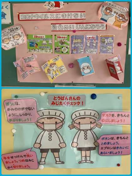 給食室前掲示板にも栄養教諭が子どもたちに意識してほしいことをわかりやすくまとめてくれています。7月も油断しないで、みんなで気をつけていきましょうね。