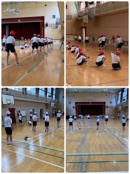 雨でしたので、今日の体育は全て講堂で行いました。