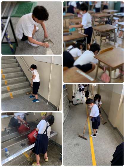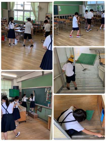 今日、そうじの時間、学校を回ってうれしかった。一人一人が考えてくれていました。