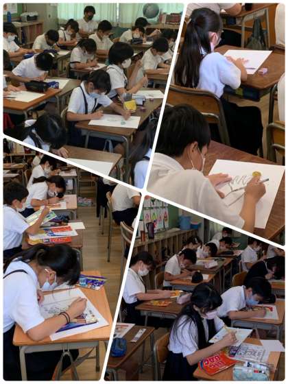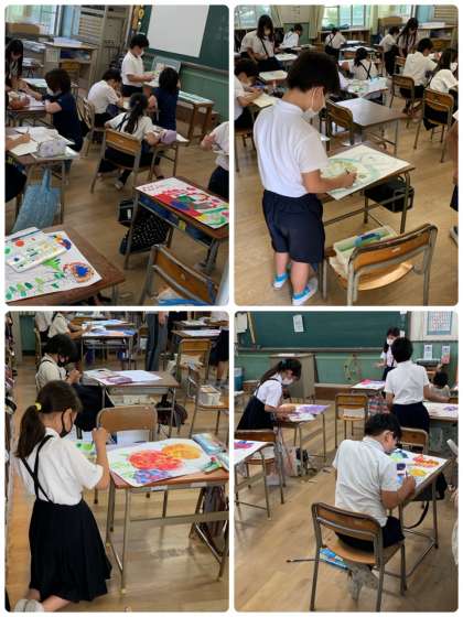 木曜日の午後は、図工の時間のクラスが多く、今日も4年生と5年生、6年2組が取り組んでいました。それぞれが真剣に自分の思いを絵で表現していました。(上より2枚ずつ、5年1組、6年2組、4年2組、4年1組)