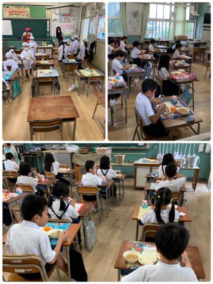今日もマナーよく、のこさず食べることができていました。そぼろ丼もみそ汁もおいしかった〜。冷凍みかんは、お天気だったらもっとよかったんだけど。でも、冷たくておいしかったね。