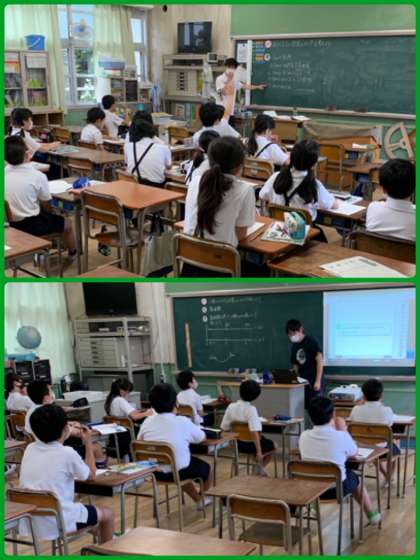 5年生の算数の学習は、今日も分割して小数のかけ算の学習に取り組んでいました。