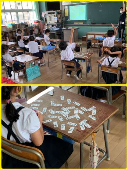 授業を見に行った時には、「こたえが8になるカードをみつけよう」という問題にチャレンジしているところでした。「1+7」「5+3」…たくさん見つけることができていました。ゲーム的な要素も取り入れながら、けいさんカードを使うことで、基本的なたし算がしっかりと身についていっているようです。