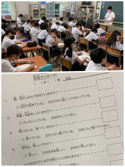 5年生は、今日行いました。担任の先生が一つずつ設問を読みあげ、子どもたちが正直に回答をしていきます。