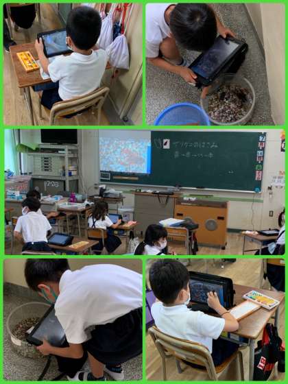 そのかわいいザリガニたちを、今度は図工科の学習で描くことになりました。タブレットで撮影したザリガニをモデルにスタートです。どんな作品になるか、楽しみです。