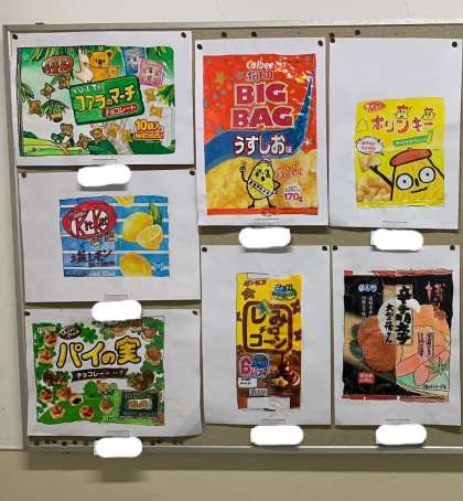 まずは6年生の作品。お菓子のメーカーさんから広告料をもらわなきゃ、と思ってしまうくらいの作品です。