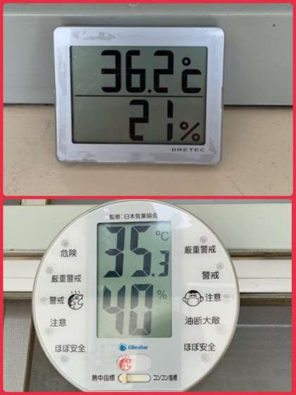 保護者のみなさん、外で遊ばせる際は水分補給・帽子をかぶるなど十分気をつけてください。できれば、夕方までは室内で過ごさせてください。