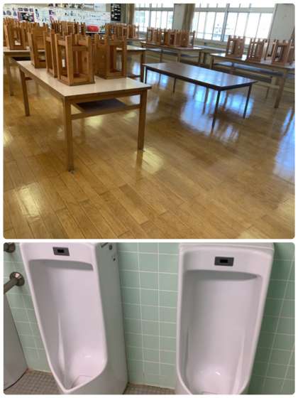 そして4月の家庭科室の床に続いて、図工室の床もピカピカになりました!トイレも清掃作業が終わってピカピカです!