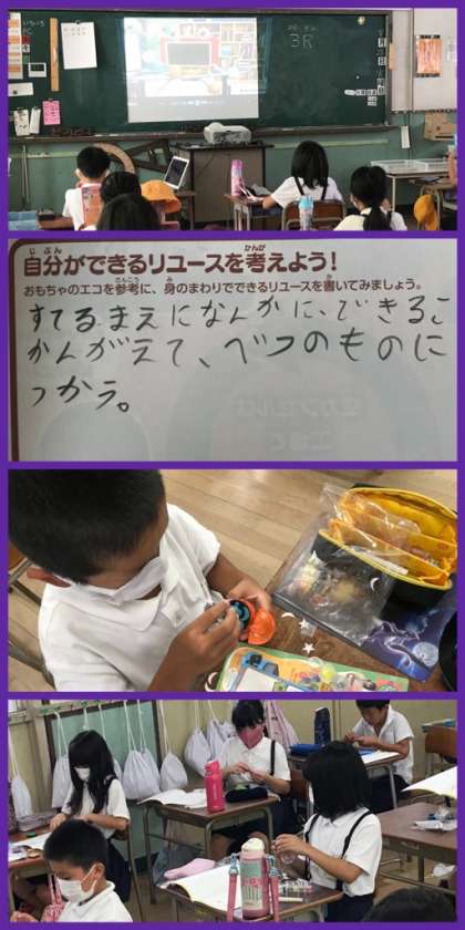 おもちゃのBANDAIさんから教材を提供していただき、3Rに関する学習を行いました。