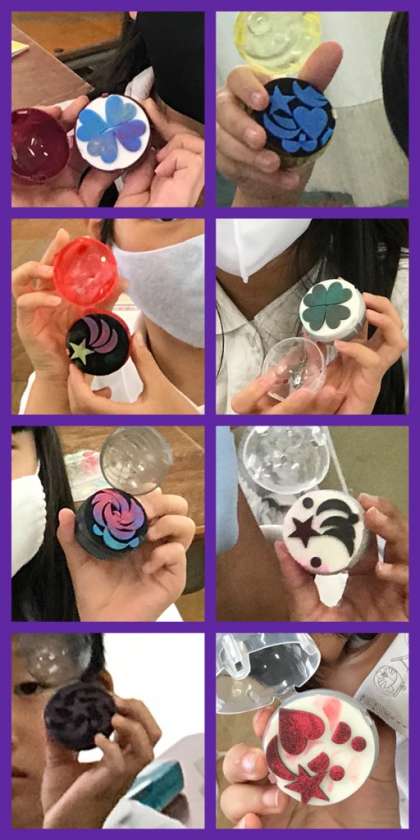 「リデュース」「リユース」「リサイクル」について考えた後、リサイクルによってできたカプセルハンコを作成しました。