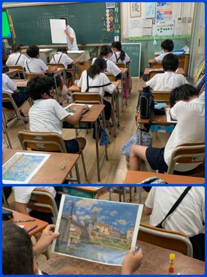 一人一枚、どこかで見たことのある絵画を手に、先生からの説明を聞いています。次はどんな作品に取りかかるのかなぁ、、、楽しみです。