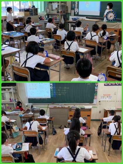 日常生活の中で、どんなときに時計を読んでいるかについて話し合っていました。その話し合いを通して、「時刻」と「時間」のちがいについて考えました。「1時30分」と「1時間30分」、どうちがうのかな?