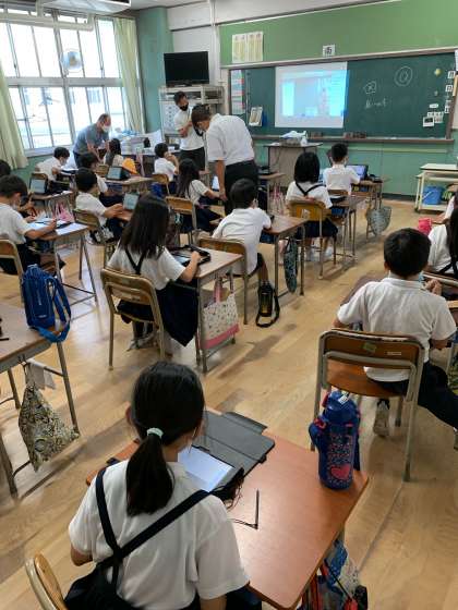 今月末に行うTeams接続テストにたくさんの申込みをいただきました。ご協力ありがとうございます。ご家庭で子どもたちが操作に慣れて使えるように学校でもタブレット端末で練習を進めていきます。今日は3年1組の子どもたちがチャレンジしました。