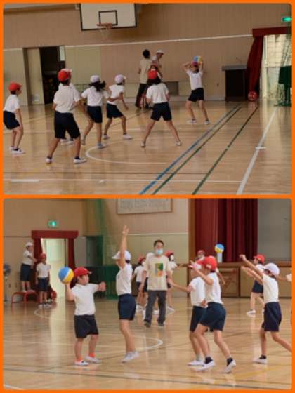 1組が講堂でボール運動の学習をしていました。後半はポートボールの試合が。なかなかの白熱ぶりでした。