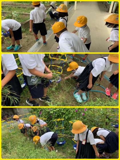 少し涼しさが感じられた今日、学習園の生い茂った雑草を1年生が抜いてくれました。ありがとう。次は何を植えるのかなぁ?