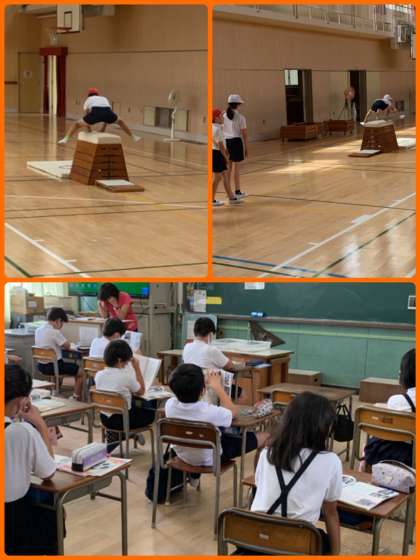 〔3枚目〕4年1組 体育 とび箱 4年2組 社会の学習