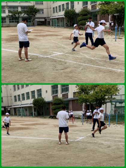 体育 50m走のタイムを測っていました。前回よりも伸びたかな?
