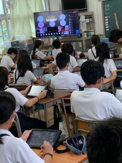 Teams接続テストに向けて、タブレット端末を使って準備をしています。