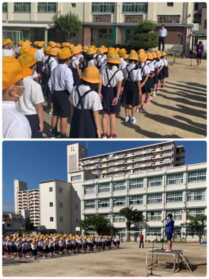熱中症の心配も少なくなったこともありますが、何よりここまで一人一人が手洗い、マスク、検温、ディスタンスに取り組んだからこそ集まることができました、とお話しました。10月は遠足や社会見学、修学旅行もあります。もう一度、気を引き締めて取り組んでいこうとも話しました。