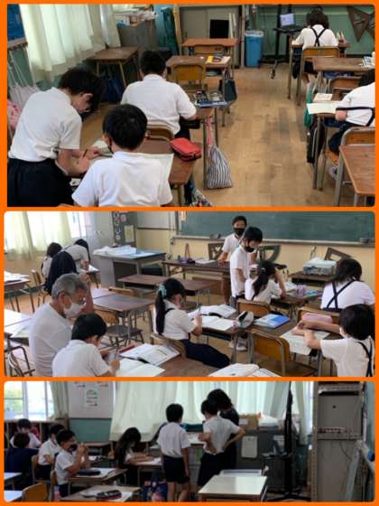 算数のまとめ。どのクラスでも「教え合い」「学び合い」の場面が見られました。教えられる方だけではなく、教える方もわかりやすく説明することで、さらに理解が深まります。とても大事な学習です。