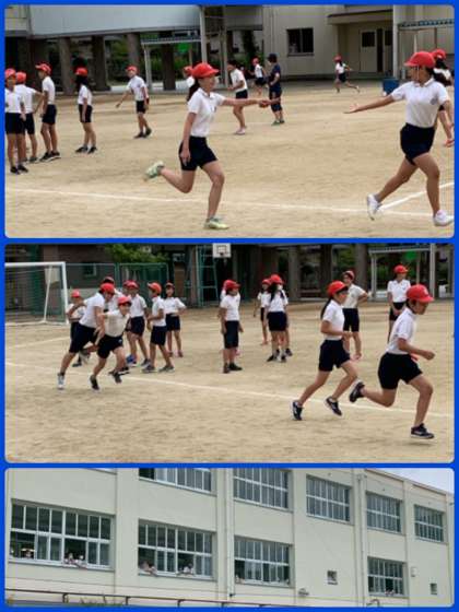 今日は2組がリレーの練習。何度も練習を重ねることでチーム力も上がってきています。すばらしい光景です。練習の後は、本番さながらの対決。