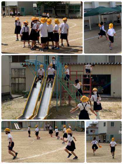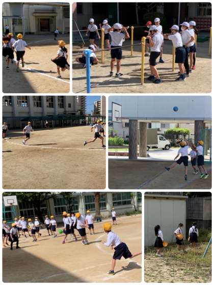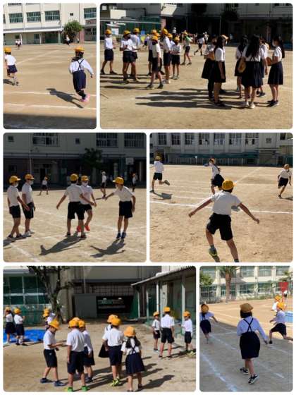 6年生は休み時間にもリレーの練習。がんばっています。