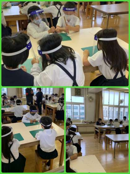 2年生は「ブンブンごま」を作成中。安全に気をつけて作業できました。どんなこまができるのか、楽しみです。