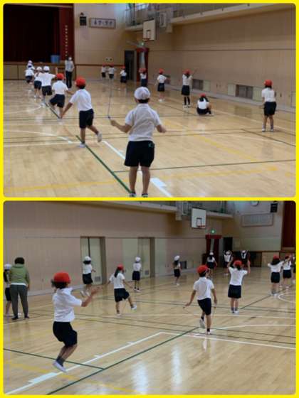 大なわも跳ぶ方は上手になってきましたが、回す方はちょっとむずかしそう。