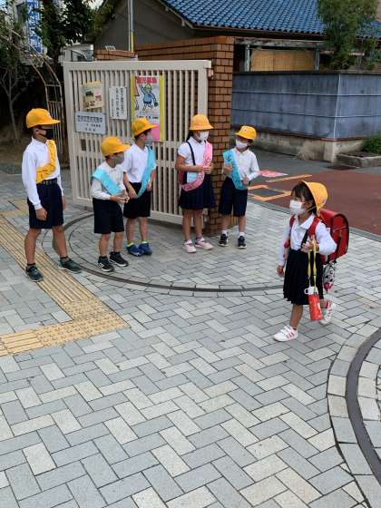 今週は2年生のみなさんがあいさつ隊としてがんばります。トップバッターは1組の5人。しっかりとあいさつできました。気持ちのよい朝です。