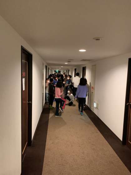 避難訓練のあと、夕食会場へ。