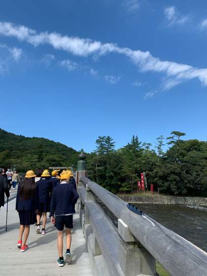 でも、そのかげにはみなさんのおうちの人の支えがあったこと。先生たちも懸命に動いてくれたこと。伊勢神宮、スペイン村、モクモクファームのみなさんが私たちを受け入れてくれたこと。旅行会社、バス会社のみなさんもそうです。たくさんの人たちに支えられ、この修学旅行に行けること。62名全員で感謝しながら修学旅行に行こう。